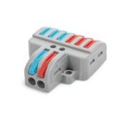• Универсальные миниатюрные клеммы для подключения любых типов медных проводников: моножильных и многопроволочных • Максимальное напряжение: 450 В • На 40% меньше и компактнее чем клеммы серии 222 • Прозрачный корпус позволяет контролировать правильность положения проводника и длину снятия изоляции • Два тестовых отверстия дают возможность измерения электрических параметров цепи без разбора и нарушения изоляции соединения